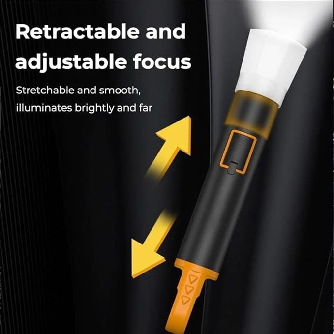 Foco telescópico com ajuste de extensão e retração suave, proporcionando uma iluminação não apenas intensa, mas também de longo alcance.