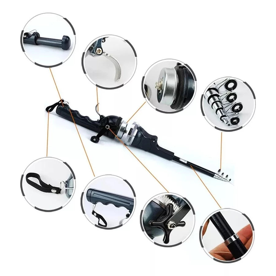Começa com a nossa incrível vara de pesca dobrável! Esta ferramenta compacta e maravilhosa é perfeita para pescadores profissionais e iniciantes. Leve, é perfeita para longas caminhadas e pronta para ser sua companheira de confiança no mundo da pesca.